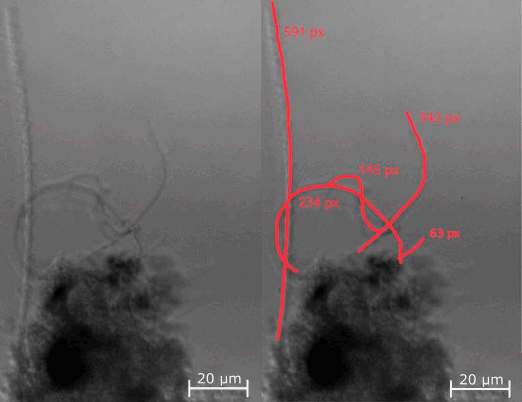 Die Idee des TEFLs ist das grundlegende Konzept unserer vollautomatisierten Messmethode. Wir betrachten die Länge alle fadenförmigen Bakterien in unseren Digitalaufnahmen als Pixel pro Bild. Der Parameter