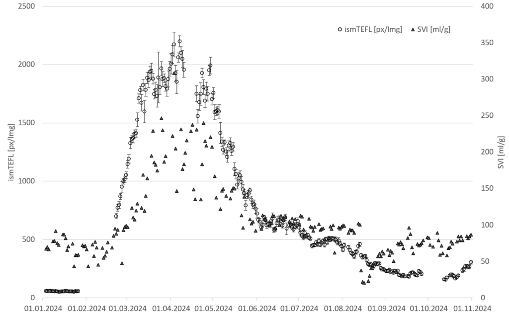 Diese Frühwarnfunktion kann von großem Wert sein, gerade wenn die Zugabe der Fällmittel genau auf den Anstieg der Fadenbakterien angepasst wird. Die von uns dazu durchgeführte Fallstudie finden Sie HIER.